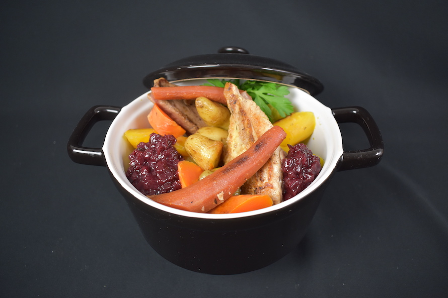 Préparation : Préchauffez votre four à 160°. Enfournez la cocotte (avec le couvercle) durant 25 minutes à 160°